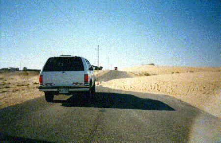 We also used the cars to drive to South Camp. South Camp is almost 500 Km from North Camp. There were two routes to South Camp. The MSR (Main Supply Route) and the SSR (Second Supply Route). The MSR is a pretty good road which leads along a lot of MFO Observation Posts (OP's) and Control Posts (CP's). The SSR leads along the Israeli border and joins the MSR halfway down the Sinai near CP-3b. The SSR has a stretch of 80 km where the road is just a dirt road. Driving through the dessert is a very nice experience. Like it is shown on the photo above, one of the dangers are sand dunes on the road. The MFO lost several cars because of it.